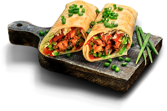 Charcoal grilled chicken with veggies and creamy mayo wrapped in fresh rumali roti.